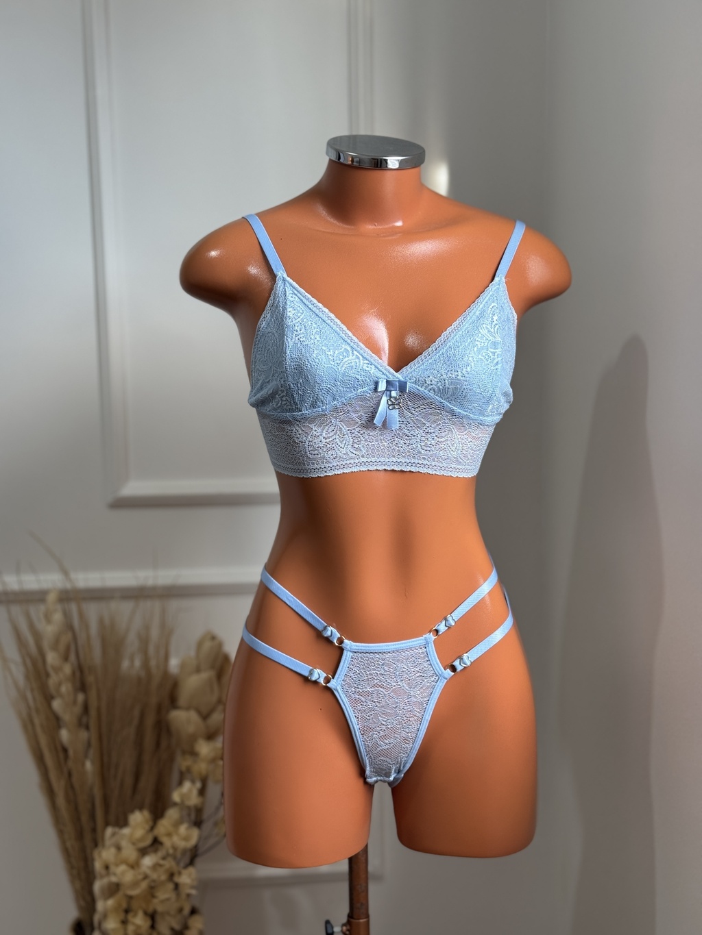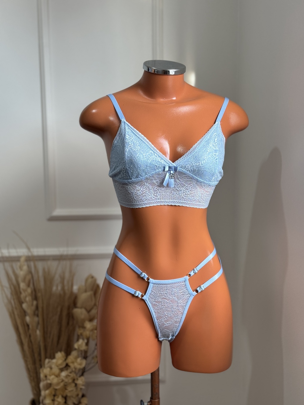 Esse conjunto é confeccionado com materiais de alta qualidade, sendo composto por renda poliamida, alças reguláveis para um ajuste perfeito que garante a sustentação sem abrir mão do conforto. A peça não possui bojo, mas utiliza renda para oferecer um toque delicado e suave à pele. A calcinha também é ajustável, proporcionando um melhor ajuste ao corpo. O Sutiã não possui arco para susentação, garantindo conforto e segurança, com um toque de sensualidade.