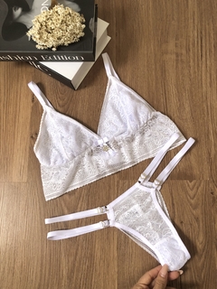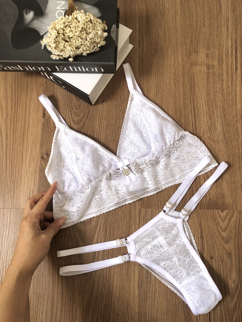 Esse conjunto é confeccionado com materiais de alta qualidade, sendo composto por renda poliamida, alças reguláveis para um ajuste perfeito que garante a sustentação sem abrir mão do conforto. A peça não possui bojo, mas utiliza renda para oferecer um toque delicado e suave à pele. A calcinha também é ajustável, proporcionando um melhor ajuste ao corpo. O Sutiã não possui arco para susentação, garantindo conforto e segurança, com um toque de sensualidade.