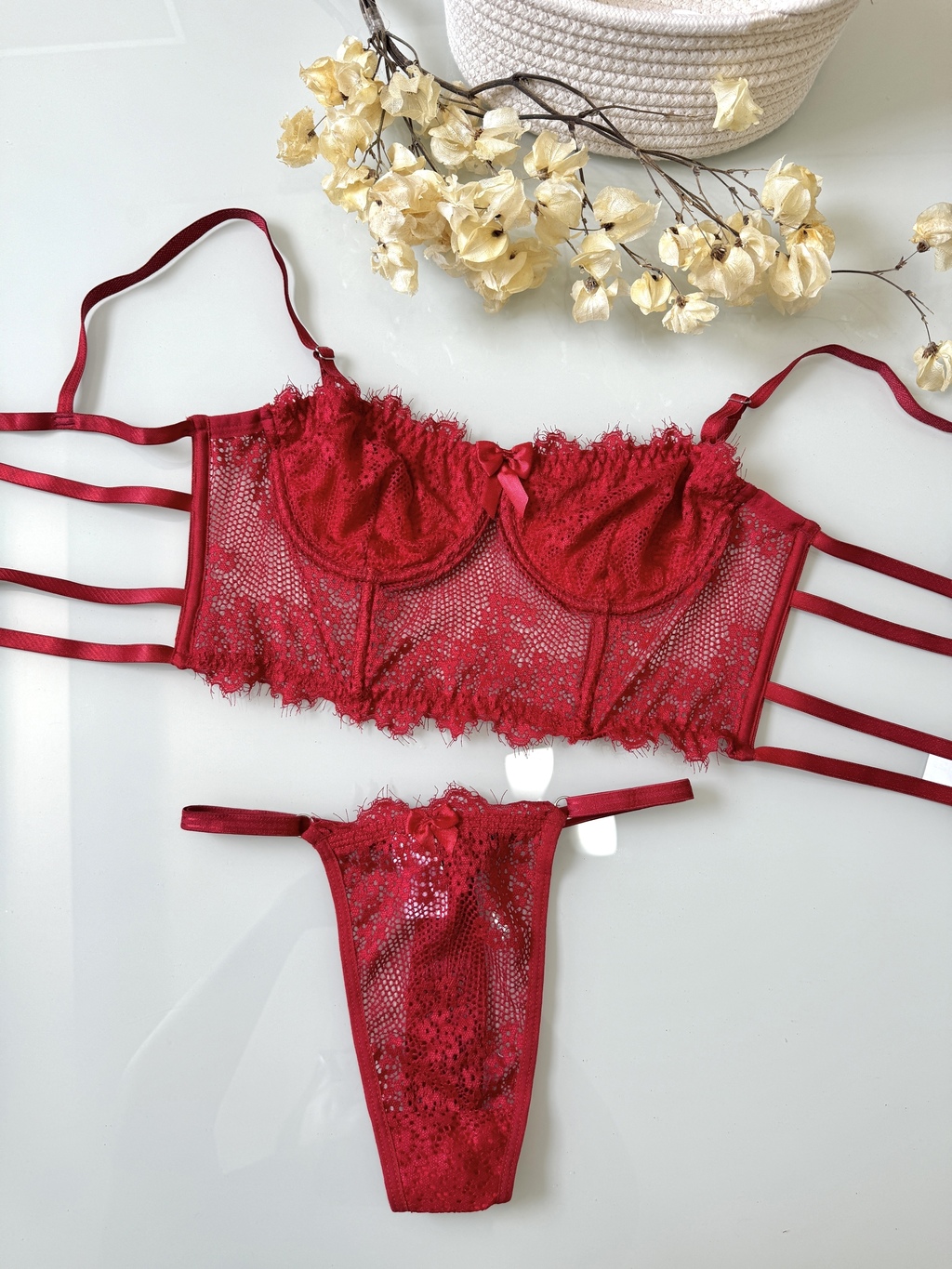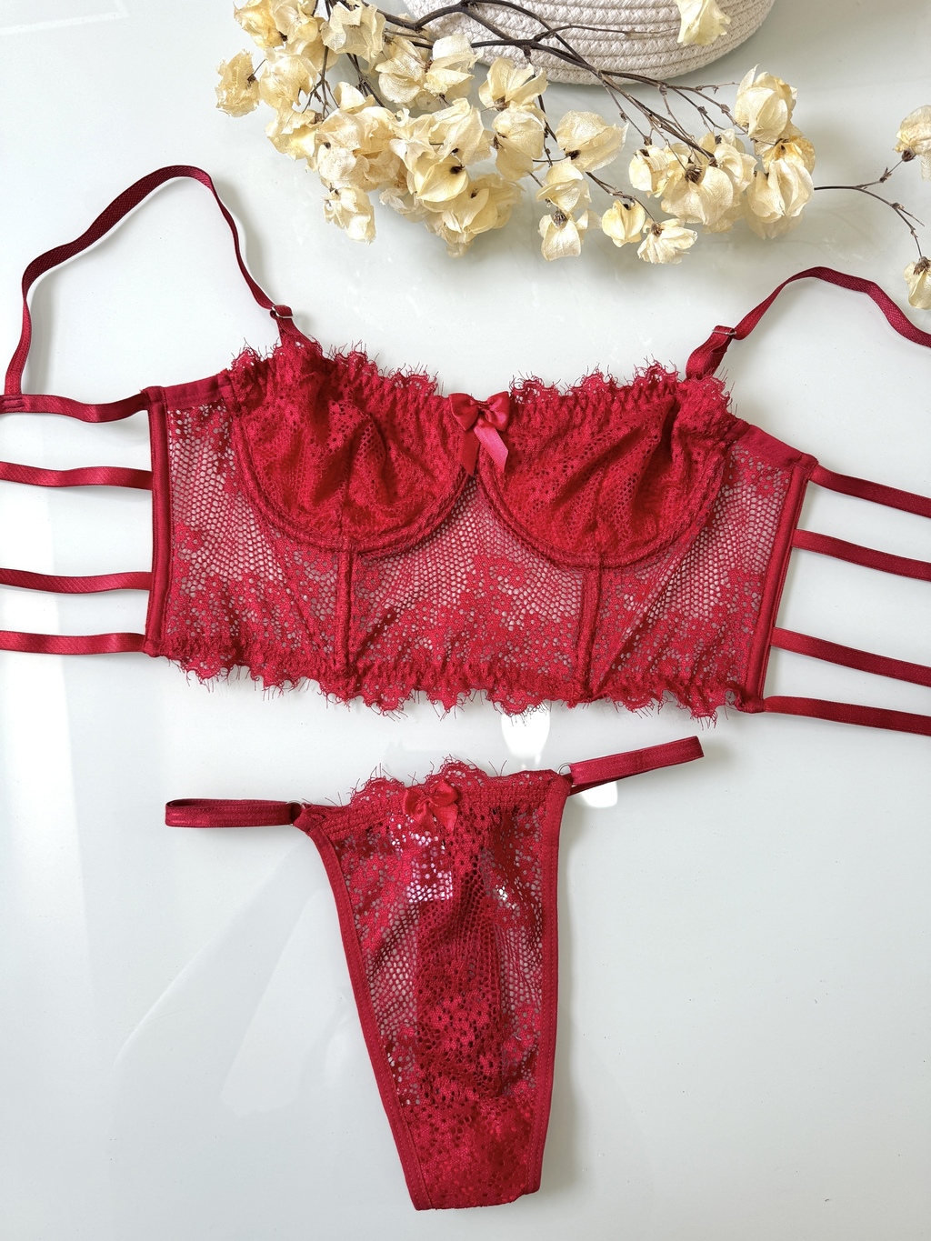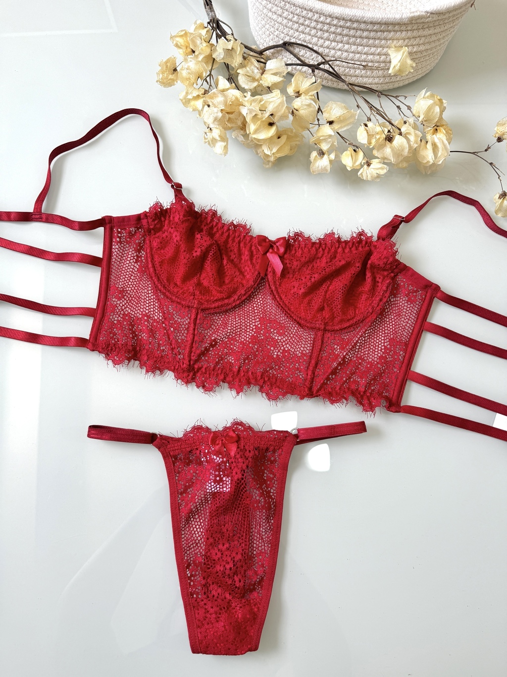 Esse conjunto é confeccionado com materiais de alta qualidade, sendo composto por renda poliamida com elastano, alças reguláveis para um ajuste perfeito e aro que garante a sustentação sem abrir mão do conforto. A peça não possui bojo, mas utiliza renda para oferecer um toque delicado e suave à pele. A calcinha também é ajustável, proporcionando um melhor ajuste ao corpo. O Sutiã possui arco para susentação, garantindo conforto e segurança, com um toque de sensualidade.