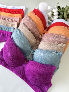 Esse conjunto possui a renda poliamida com elastano. A alça regulável a modelagem proporciona o caimento correto da peça e a sustentação aos seios. Esse modelo possui bojo, super confortavél e sexy. Uma peça indispensável na sua loja! Você pode compor com outros acessórios para ficar ainda mais completo, como por exemplo: Roby, Cinta-Liga, Persex, Entre Outros...